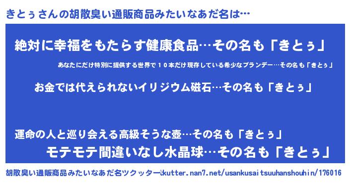 | ヒーロー風カッコイイあだ名 | 『愛の使者きとぅ』『ネオキトゥ』 |