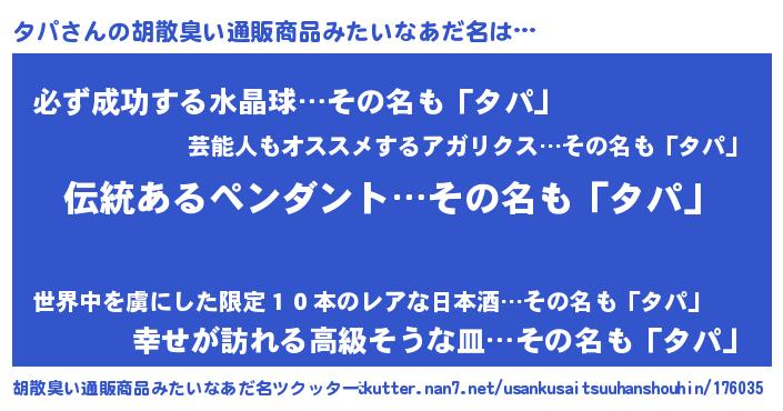 | 意味不明あだ名 | 『とにかく怪しいタパ』『ペロリンタパ』 |