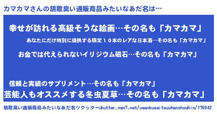 | 女子向けラノベタイトル風あだ名 | 『カマカマ恋絵巻』『闇のカマカマ』 |