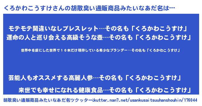 | 欧米人風あだ名 | 『ダレノガレくろかわこうすけ』 |