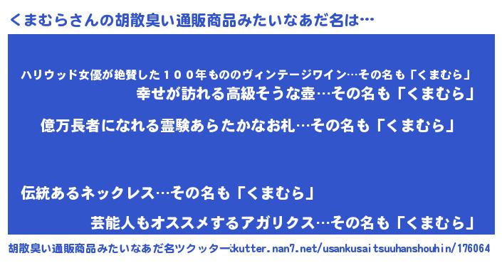 | 意味不明あだ名 | 『ペロリンくまむら』『自称くまむら』 |