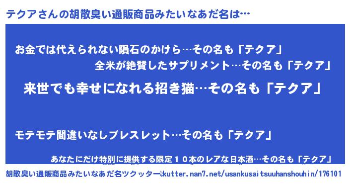 | ヘコむあだ名 | 『テクア(小並感)』『テク太郎』 |