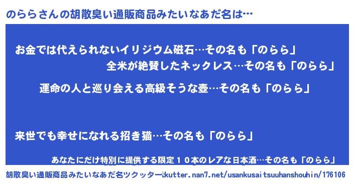 | 意味不明あだ名 | 『のららフォーエバー』『ニラ科のらら属』 |
