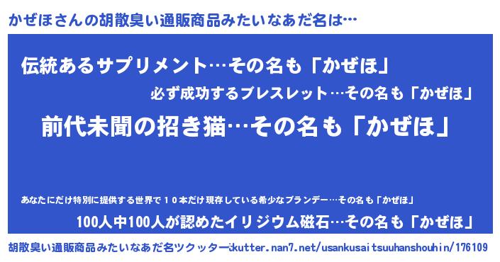 | ヘコむあだ名 | 『かぜほ(笑)』『かぜ太郎』『牛乳』 |