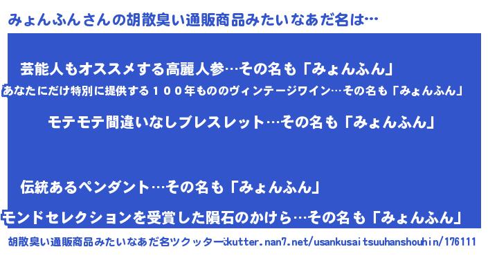 | 意味不明あだ名 | 『ペロリンみょんふん』『自称みょんふん』 |