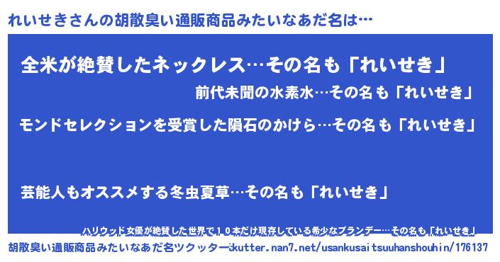 | ヘコむあだ名 | 『れいぷりん』『れいせき(爆)』 |