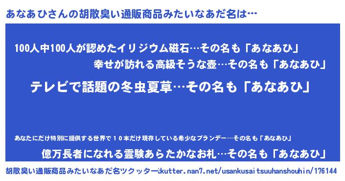 | ヘコむあだ名 | 『あなもー』『つくし』『あなを』 |