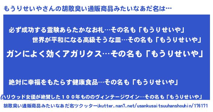 | 女子向けラノベタイトル風あだ名 | 『もうりせいやなんてお断りですっ。』 |