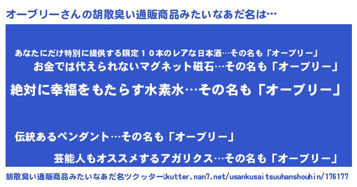 | ヘコむあだ名 | 『オーブリー(遠い目)』『オーぷりん』 |