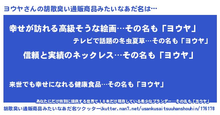 | ヘコむあだ名 | 『ヨウ太郎』『牛乳』『ヨウヤ(苦笑)』 |