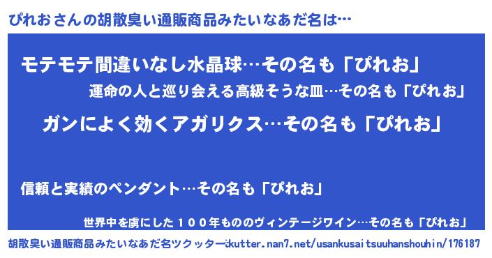 | 意味不明あだ名 | 『自称ぴれお』『ペロリンぴれお』 |