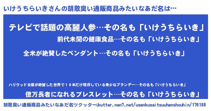 | 意味不明あだ名 | 『とにかく怪しいいけうちらいき』 |
