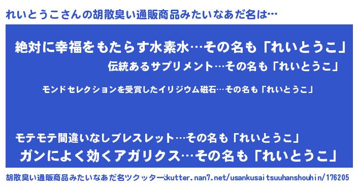 | ヒーロー風カッコイイあだ名 | 『慈愛の使者れいとうこ』『魔戒騎士レイ』 |