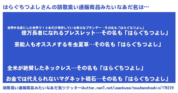 | 意味不明あだ名 | 『自称はらぐちつよし』 |
