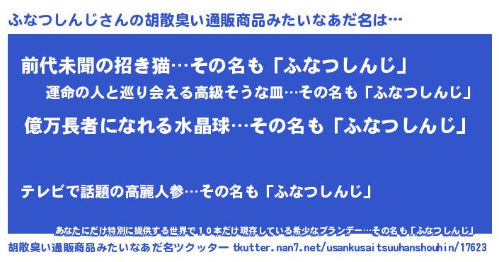 | ヘコむあだ名 | 『ふなもー』『ふなつしんじ(笑)』 |