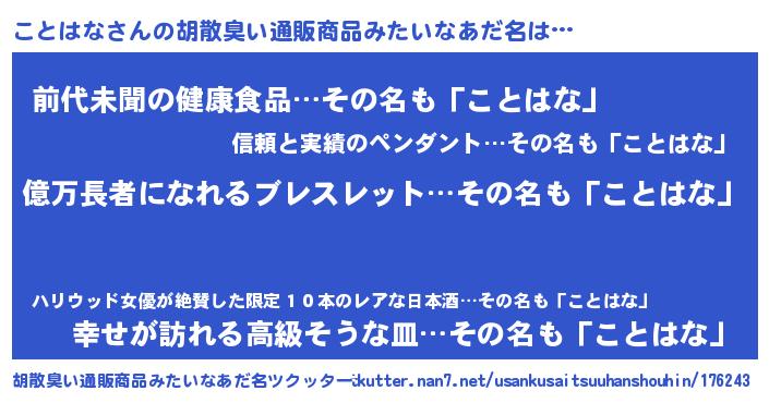 | ヘコむあだ名 | 『ことにー』『ことはな(笑)』『牛乳』 |