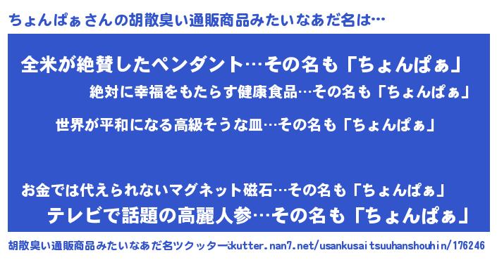 | 意味不明あだ名 | 『ちょんぱぁフォーエバー』 |
