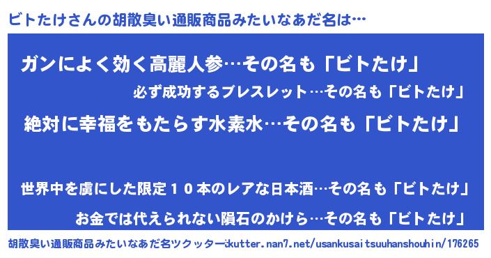 | ヘコむあだ名 | 『ビトたけ(震え声)』『ビトふぇ~』 |
