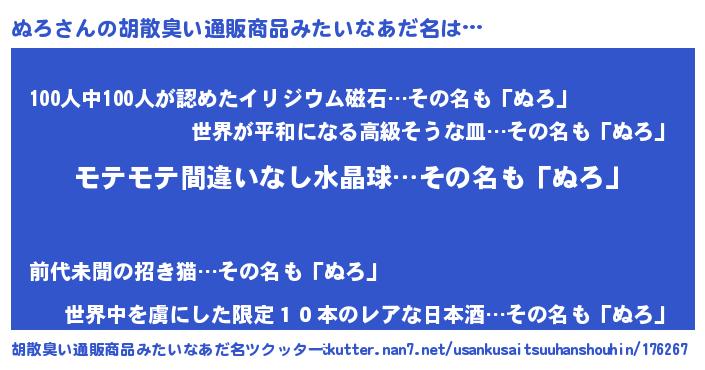 | ヘコむあだ名 | 『ぬろにゅー』『つくし』『ぬろ(笑)』 |