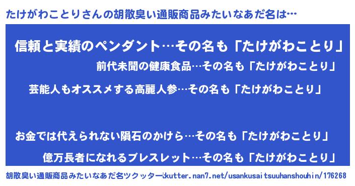 | 意味不明あだ名 | 『自称たけがわことり』 |