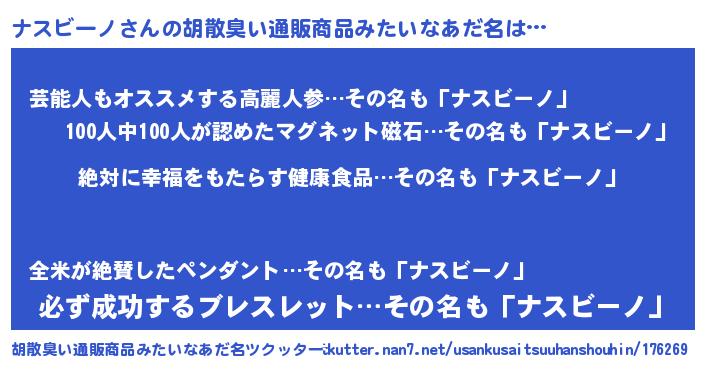 | ヘコむあだ名 | 『ナスビーノ(笑)』『ナスにー』 |