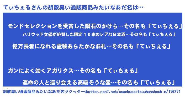 | 伝説のあだ名 | 『封印されしスナイパーてぃちぇる』 |