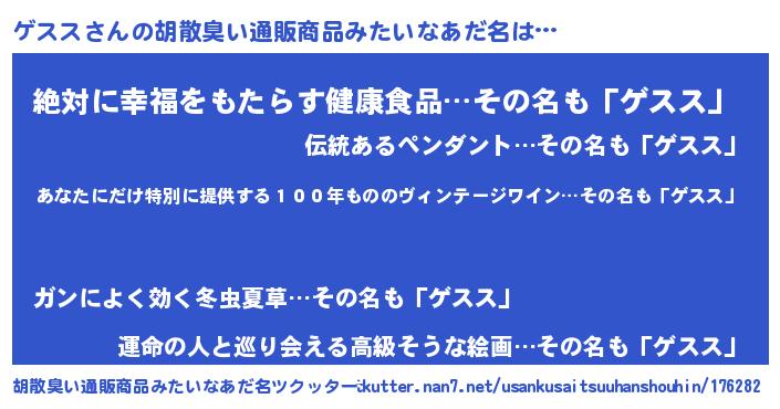 | 意味不明あだ名 | 『住所不定無職ゲスス(12歳)』『自称ゲスス』 |