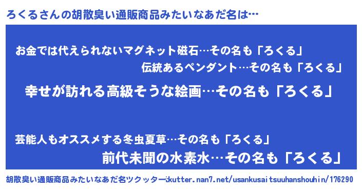 | ヒーロー風カッコイイあだ名 | 『ウルトラろくるマン』『ネオロクル』 |