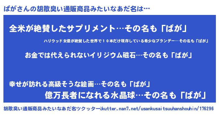 | ヘコむあだ名 | 『ばがっぺ』『ばがにー』『つくし』 |