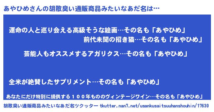| 意味不明あだ名 | 『自称あやひめ』『あやひめフォーエバー』 |