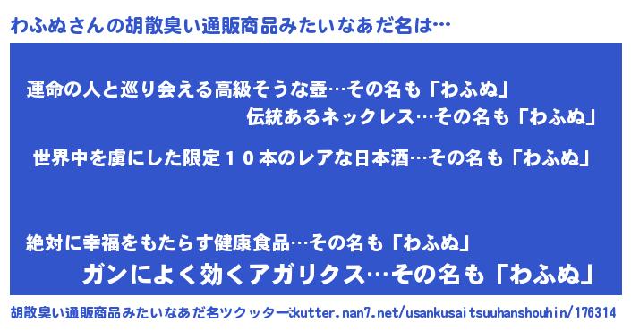 | 意味不明あだ名 | 『住所不定無職わふぬ(50歳)』『自称わふぬ』 |