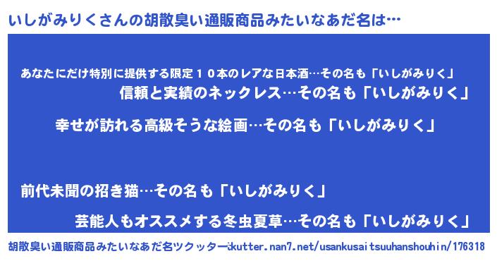 | 肩書あだ名 | 『いしがみりく総理大臣』 |