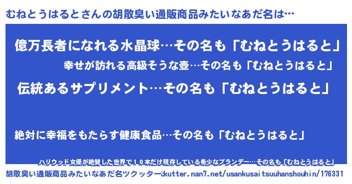 | 意味不明あだ名 | 『とにかく怪しいむねとうはると』 |