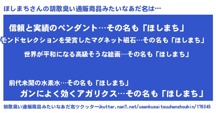 | ヘコむあだ名 | 『豆乳』『ほしお』『ほしまち(苦笑)』 |