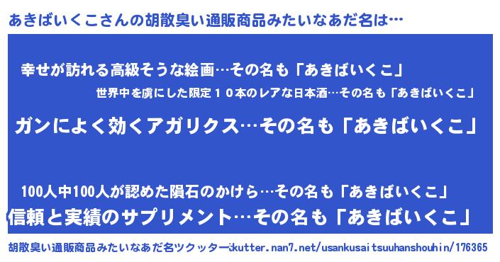 | 恥ずかしいあだ名 | 『アキバイクコデラックス』『あきっちょ』 |