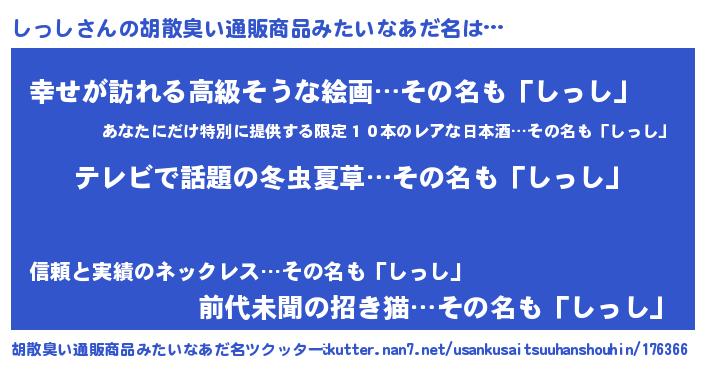 | 意味不明あだ名 | 『自称しっし』『しっしフォーエバー』 |