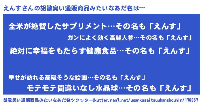 | 意味不明あだ名 | 『永久保存えんす』『ペロリンえんす』 |