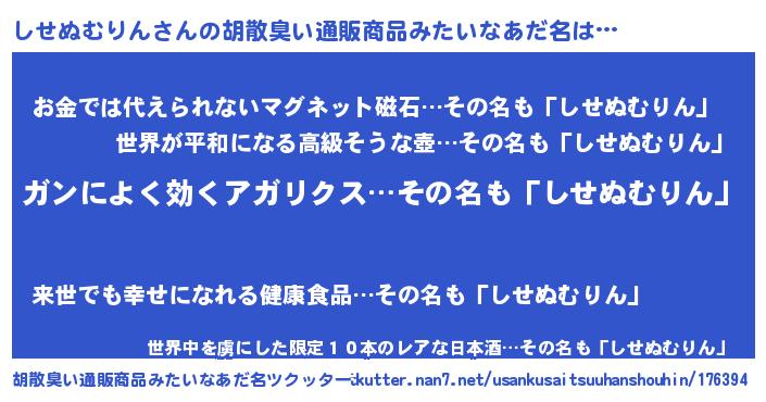 | 意味不明あだ名 | 『自称しせぬむりん』 |