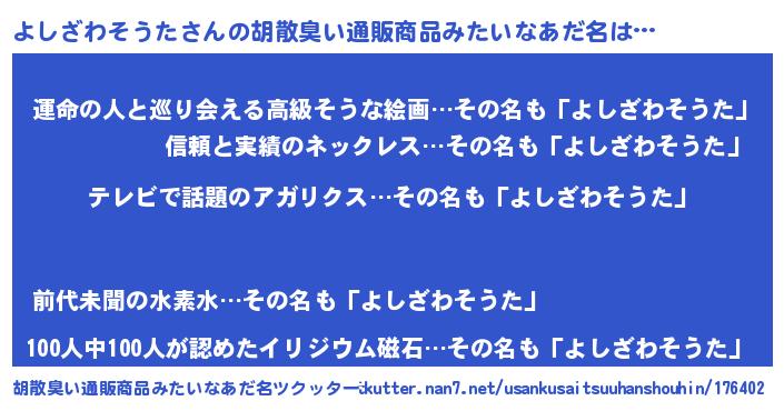 | 肩書あだ名 | 『よしざわそうた閣下』 |