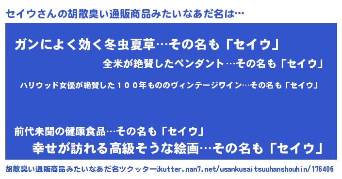 | 意味不明あだ名 | 『住所不定無職セイウ(1歳)』『自称セイウ』 |