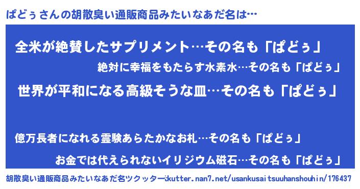 | 意味不明あだ名 | 『ぱどぅフォーエバー』『永久保存ぱどぅ』 |