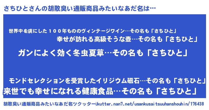 さちひとさんの胡散臭い通販商品みたいなあだ名をツクッター!