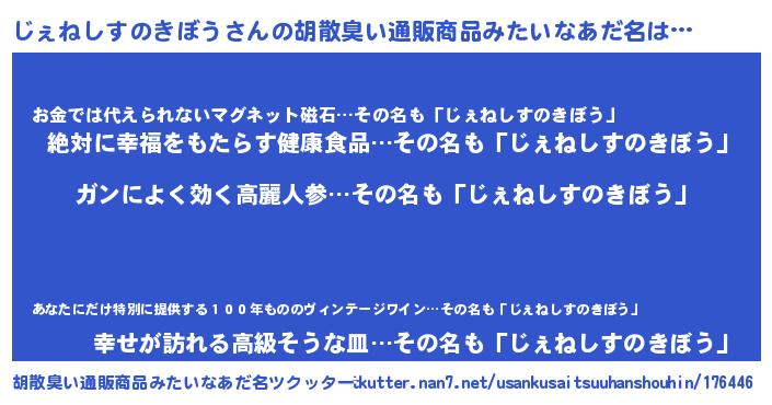 | 女子向けラノベタイトル風あだ名 | 『じぇねしすのきぼうなんてお断りですっ。』 |