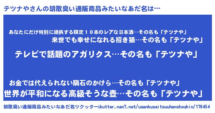 | 意味不明あだ名 | 『自称テツナや』『テツナやフォーエバー』 |