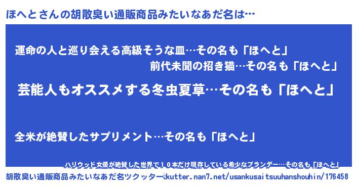 | 意味不明あだ名 | 『自称ほへと』『ほへとフォーエバー』 |