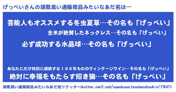 | 意味不明あだ名 | 『ペロリンげっべい』『自称げっべい』 |