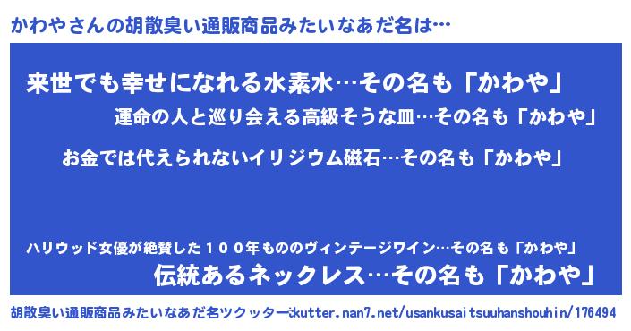 | 女子向けラノベタイトル風あだ名 | 『かわや恋絵巻』『かわやの契約王妃』 |
