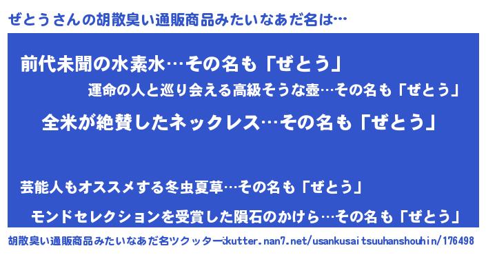 | 意味不明あだ名 | 『とにかく怪しいぜとう』 |
