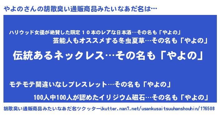 | ピコ太郎風あだ名 | 『ヤヨ五郎』『ヤヤ太郎』『ヤコ次郎』 |
