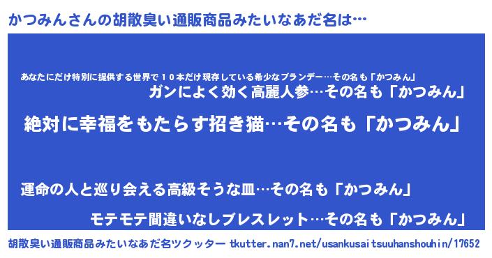 | ヘコむあだ名 | 『かつみん(小並感)』『かつっふぃ~』 |
